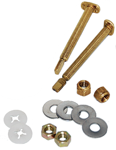 Includes: Two brass bolts, hex nuts, washers, and tinnerman nuts