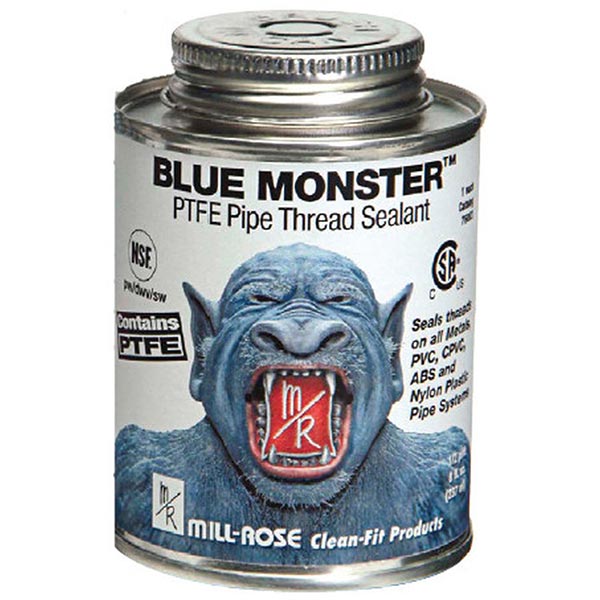 Mill-Rose 76005 is a heavy-duty industrial grade pipe thread sealant designed for various applications. This product is formulated with PTFE for enhanced lubrication on pipe threads. It comes in a sixteen-ounce can and is suitable for use with metals, PVC, CPVC, ABS, and nylon plastic pipe systems.