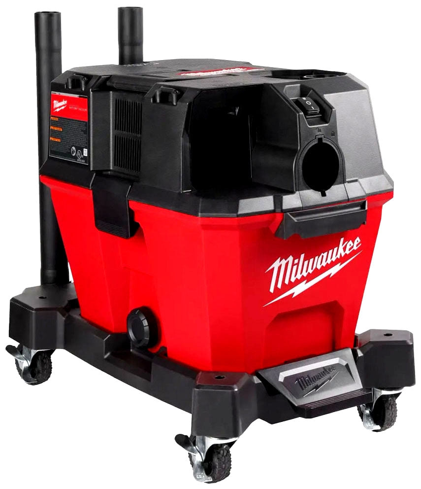 This wet/dry vacuum is part of Milwaukee's versatile system, allowing for the interchange of tanks and motor heads. The easy-access foot pedal enhances mobility and usability on site.