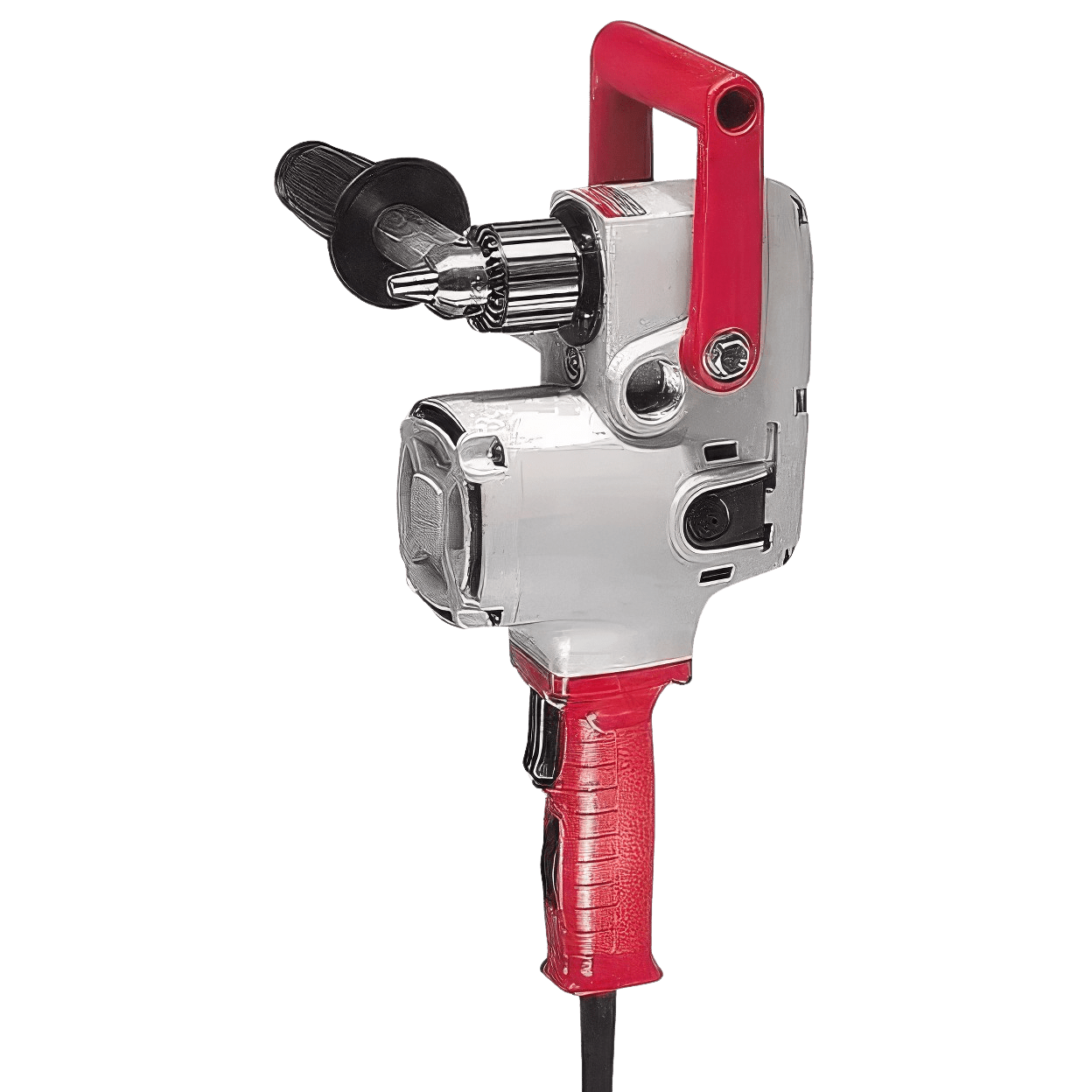 The Milwaukee Tool 1675-6 is a right angle drill ideal for drilling large holes in tight spaces. This model operates on 120 VAC and features a 1/2 inch keyed chuck. Its powerful 7.5 amp motor allows for variable speed control ranging from 300 to 1200 RPM. The compact design makes it effective for drilling between studs and joists.