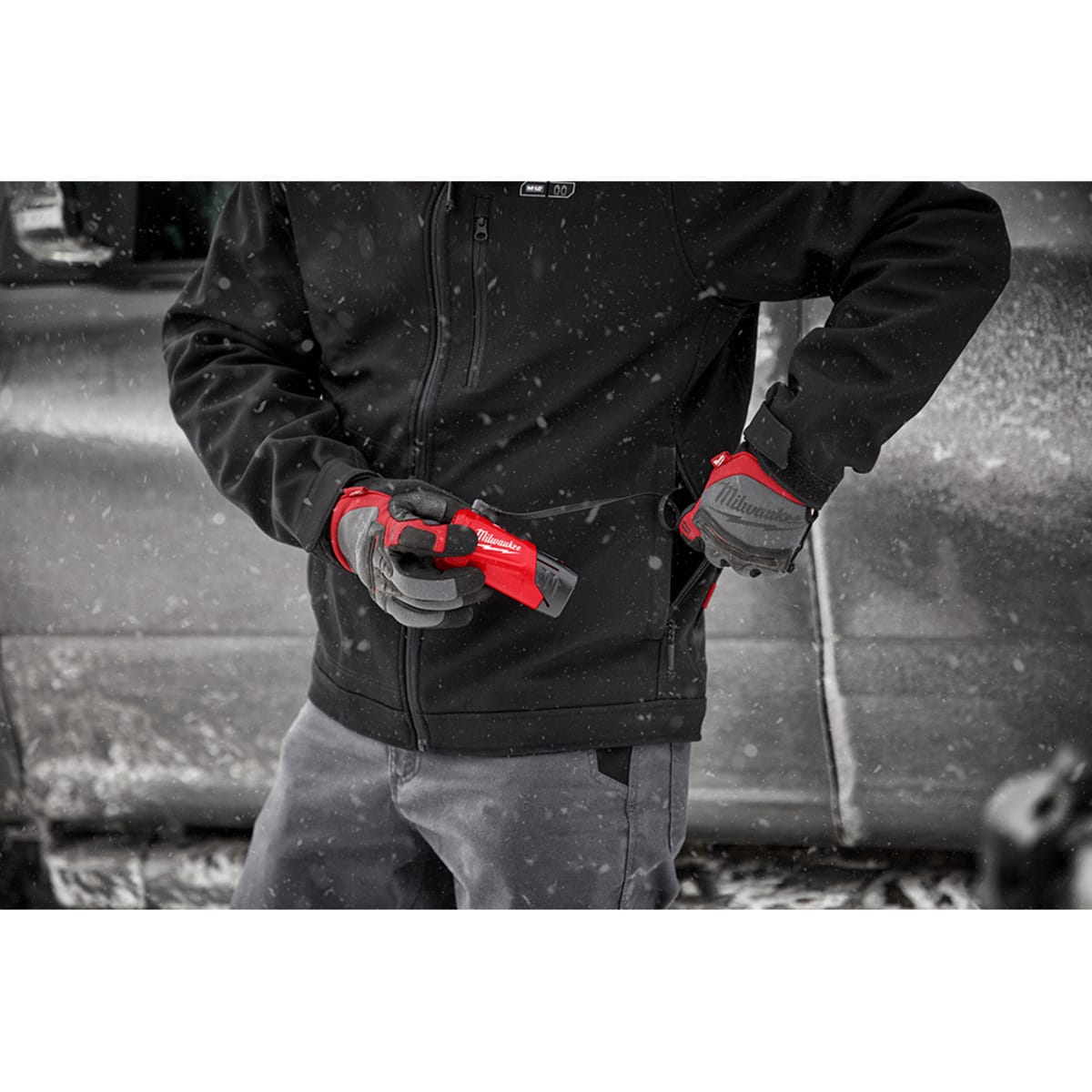 The Milwaukee Tool 204B-20M M12 Heated TOUGHSHELL Jacket is designed for warmth and protection. It utilizes M12 REDLITHIUM Battery Technology and features an advanced heat system for quick heating. This jacket combines durable carbon fiber heating elements with optimized fabric for long-lasting use. It is engineered to keep users warm while working outdoors or enjoying leisure activities.