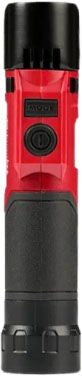 This flashlight is designed for trade professionals, providing the ultimate versatility and convenience with options for maximum brightness and extended runtime. It can operate up to ten hours in low flood mode. The integrated fuel gauge tracks battery charge.