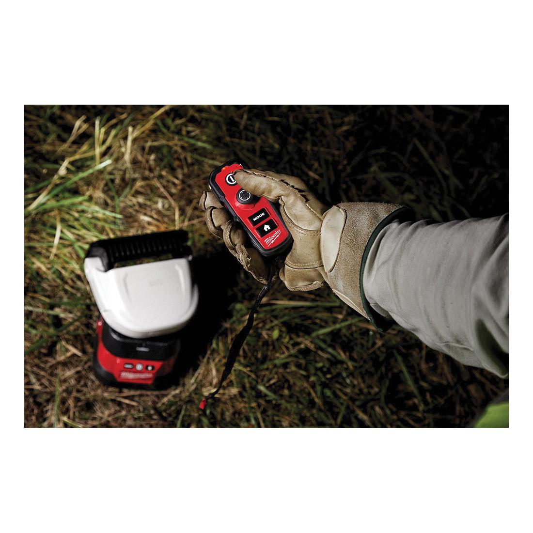 The Milwaukee M18 Utility Remote Control Search Light with Portable Base is designed for power utility applications. This cordless light features a beam distance of 1,250 yards and provides up to 4,250 lumens of TRUEVIEW High Definition Output. Users can switch between spot and flood modes and utilize either a permanent or portable magnetic base. A wireless remote control allows remote adjustment and powering of the light. This search light is also compatible with the ONE-KEY app for easy tracking. Built to withstand outdoor conditions, it includes a five-year tool warranty and a limited lifetime LED warranty.
