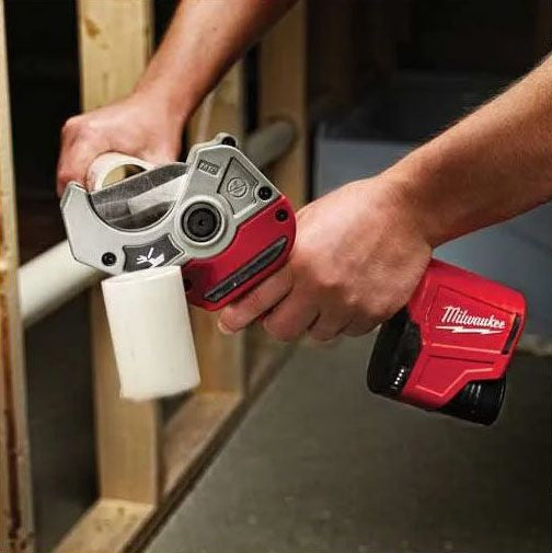 The Milwaukee 2470-20 is a cordless plastic pipe shear that cuts up to two inches of schedule 80 PVC in just three seconds. This tool features a sharp stainless steel blade for clean, burr-free cuts, making it efficient for various plumbing tasks. The offset blade design allows for cutting near walls or mounted pipes. It operates on the Milwaukee M12 lithium-ion battery, providing over 200 cuts per charge.