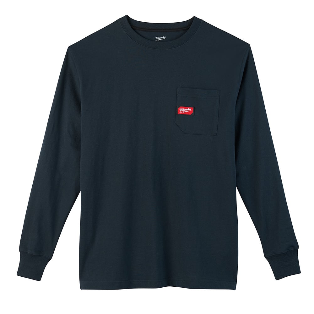 The Milwaukee 602BL-XL is a heavy-duty pocket t-shirt designed for durability and comfort. Made from a 60/40 cotton-poly blend, this long sleeve t-shirt provides breathability and protection throughout the workday. This shirt outlasts tough working conditions, ensuring reliable performance. It also features moisture-wicking properties to keep you dry and comfortable while blocking harmful UV rays from the sun.