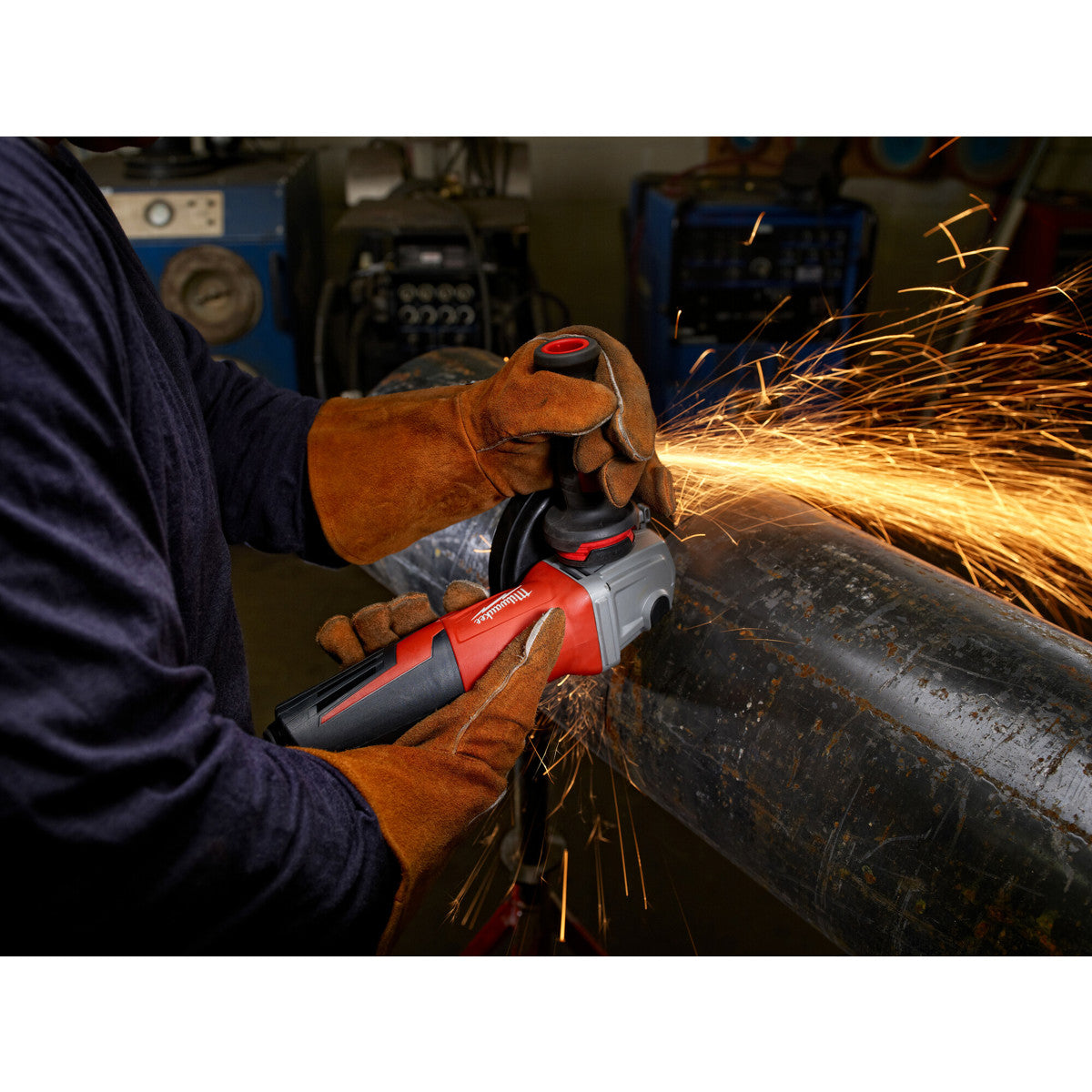 The Milwaukee Tool 6161-31 is a 13 Amp small angle grinder with a six-inch wheel. This tool is designed for durability and high performance in industrial settings. A 2,100 MWO motor powers through tough materials and delivers up to nine thousand RPM. It features overload protection and an electronic clutch that helps maintain motor life and prevents tool bind-up. The grinder supports a tool-free accessory change for quick adjustments and installations.