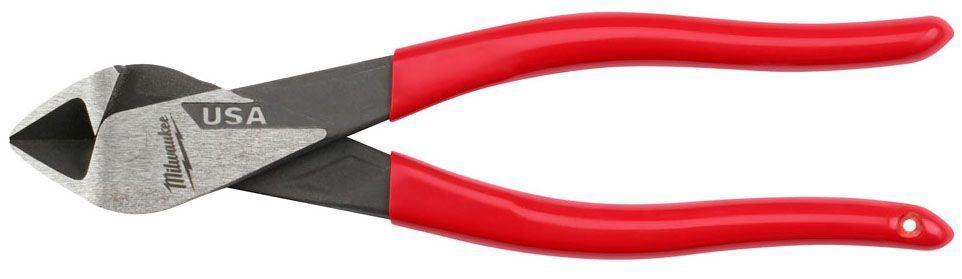 The Milwaukee 8 Diagonal Cutting Pliers (MT508) are made for professional users who need reliable tools for tough jobs. These pliers feature an optimized pivot point for enhanced leverage, allowing for effective cuts on materials such as wire, screws, and other fasteners. A laser-hardened edge contributes to a long cutting life, ensuring consistent performance.