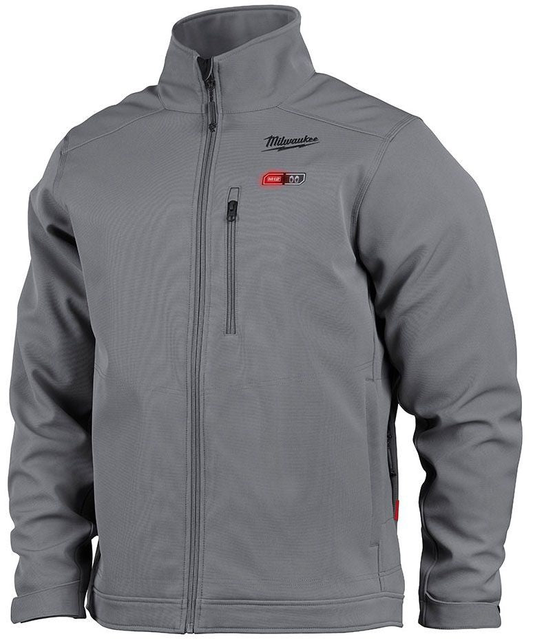 The Milwaukee Tool 204G-20L M12 Heated TOUGHSHELL Jacket in gray is designed for men and offers advanced heating technology. This jacket uses M12 REDLITHIUM battery technology along with carbon fiber heating elements for efficient heating. It features a Quick-Heat function for faster warm-up time and a unique pass-thru battery pocket for added versatility. The new TOUGHSHELL fabric allows for a more flexible fit while providing durability. This heated jacket is suitable for job site protection and outdoor work.