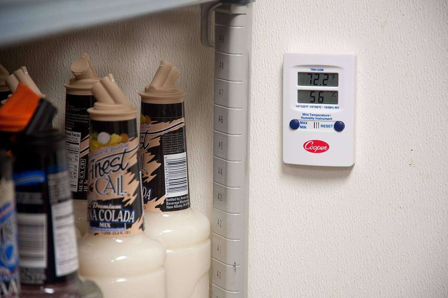 The Cooper-Atkins TRH122M-0-8 Digital Mini Temperature Humidity Dual-Display Wall Thermometer is ideal for professionals needing accurate measurements. This device provides both temperature and %Relative Humidity readings and features a Min/Max memory function along with switchable Fahrenheit/Celsius display.