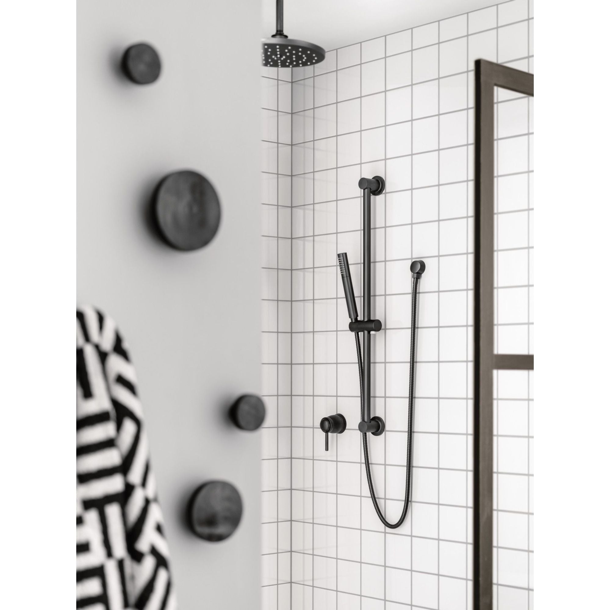 The Moen Align Shower Arm Flange, model number 137488BL, is designed to fit seamlessly in modern bathrooms. This matte black shower arm flange is a durable accessory that connects the shower arm to the wall, offering a clean finish to your shower setup.