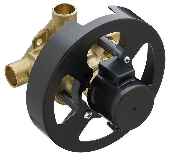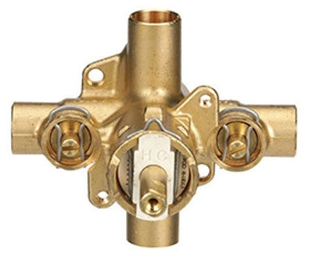 The Moen 2570 is a rough in valve designed for use in tub and shower installations. This Posi-Temp valve features a pressure balancing mechanism that helps maintain the selected discharge temperature. The 1/2 inch CC connection makes it suitable for various plumbing setups.