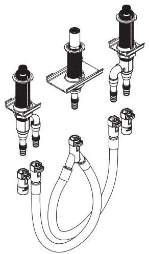 The Moen 4793 is a two-handle roman tub valve designed for use with 1/2 inch CPVC or PEX connections. This adjustable rough-in valve is suitable for a three-hole installation.