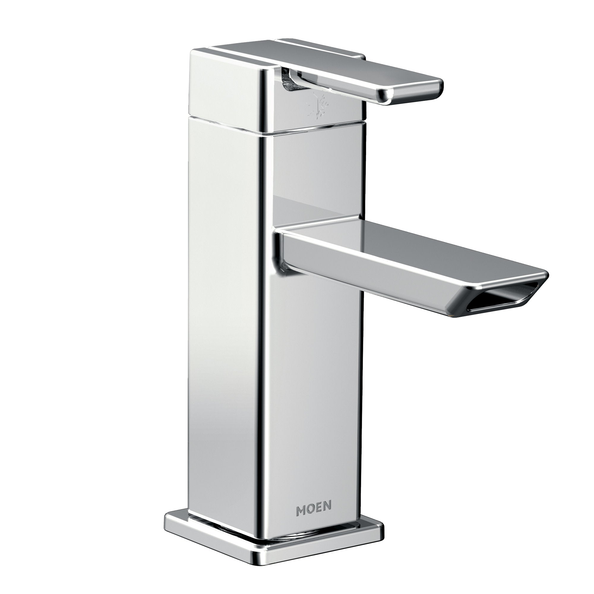 The Moen S6701 90 Degree Single Handle Centerset Bathroom Sink Faucet offers a modern design with functionality. This faucet features a single lever handle that simplifies water flow and temperature adjustments. The faucet is designed for a single hole mount, providing a sleek look that fits various countertops.
