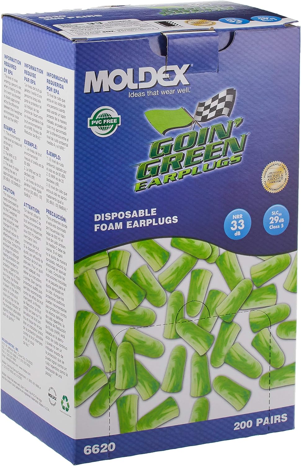 The Moldex 6620 Goin' Green Foam Earplugs are a top choice for noise protection. Moldex, a renowned brand, ensures these earplugs provide reliable performance and comfort.