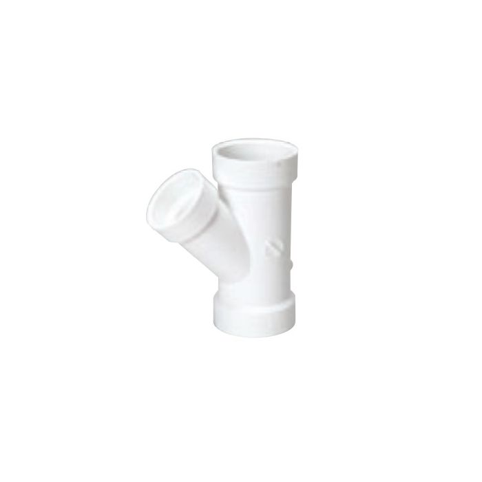 The MUEL 05827 is a PVC DWV reducing wye fitting with a nominal size of three x three x one and one half inches. It features a hub end style suitable for various plumbing applications. This reducing wye is designed to connect three pipes together and manage the flow of drainage systems efficiently.
