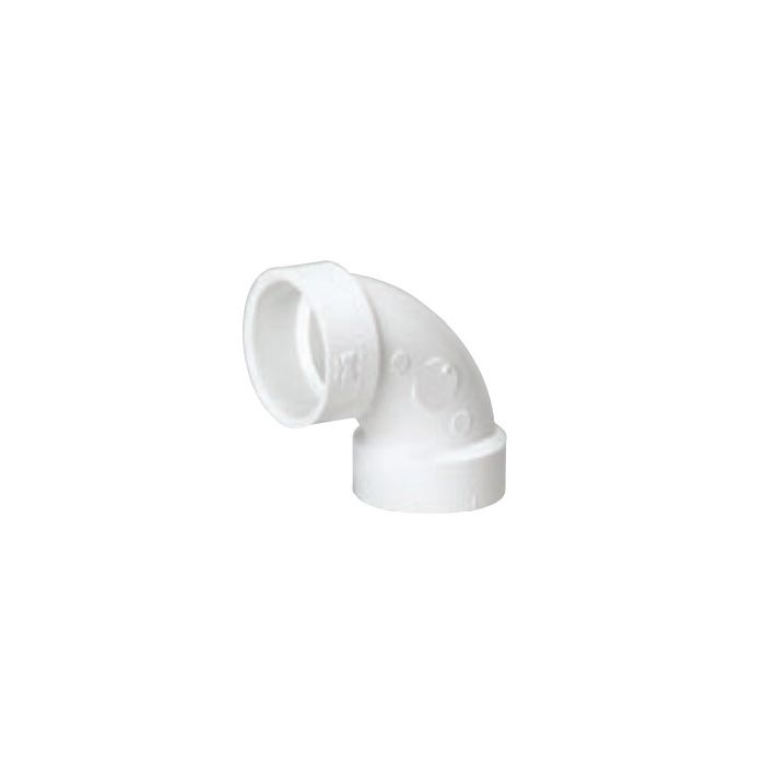 The MUEL 05876 PVC DWV 90 Degree Elbow is a fitting designed for easy connections in your plumbing system. This elbow features a hub end style and is crafted from high-quality PVC material. It is ideal for use in drainage, waste, and vent applications.