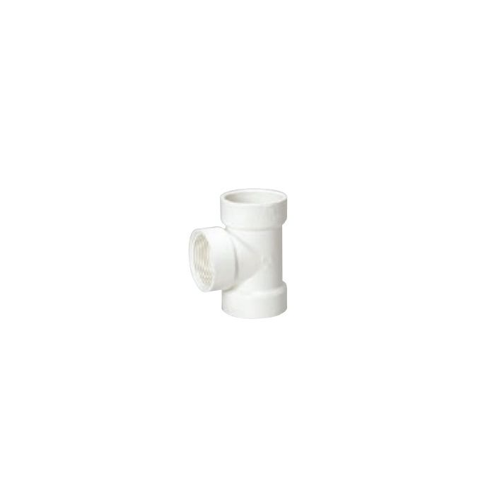 The MUEL 06414 Flush Cleanout Tee is a two-inch fitting designed for efficient drainage and cleaning. It features a hub x hub x female national pipe thread (FNPT) end configuration, suitable for various plumbing applications. This product is built to meet standard schedule forty specifications, making it robust for both residential and commercial use.