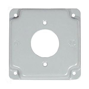 The Mulberry 11421 is an electrical square box cover designed for robust applications. This cover has a size of four inches and features a half-inch riser. The design includes a twist locking receptacle rated for twenty amps. It offers a diameter of 1.62 inches and is made from powder-coated galvanized steel for durability.