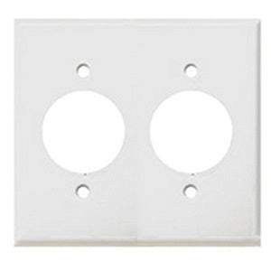 The Mulberry 86092 is a standard wallplate designed for two gangs. Constructed from steel, this wallplate is finished in white with a smooth semi-gloss appearance. It measures four and a half inches high by four and five hundred sixty-two thousandths of an inch wide. The wallplate features two single receptacle cutouts, each with an opening of one point four zero five inches. With a thickness of thirty thousandths of an inch, this wallplate is suitable for a variety of electrical applications.