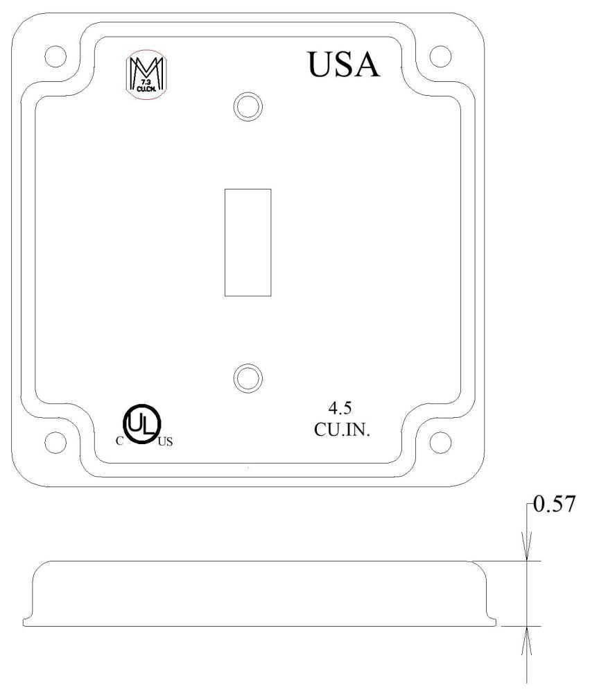 The Mulberry Metal Products 11401 is a four-inch steel single toggle switch cover designed for robust performance. Made from galvanized steel, this cover is suitable for various electrical applications. It can accommodate a raised toggle switch with a half-inch depth, ensuring a secure fit in electrical installations.