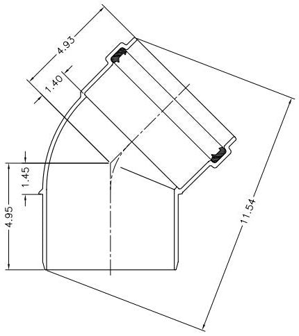 Napco offers the G406, a gasketed SDR35 sewer 1/8 street bend. This fitting is designed to facilitate connections in various drainage applications. It features a spigot x gasketed end connection, making it suitable for easy installation.