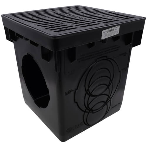 The NDS 1200BLKIT Catch Basin Kit is designed to manage and direct water away from structures and prevent water accumulation in landscapes and driveways. This kit includes a black polypropylene basin, grate, two outlets, and one plug, suitable for use in both residential and commercial settings.