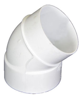 The NDS 3P03ST PVC Elbow is designed for optimal efficiency in sewer and drainage systems. This elbow fitting features a spigot to hub connection with a 45-degree angle, facilitating a change in direction in piping. Made from durable white PVC, this solvent weld elbow ensures a secure, leak-proof installation.
