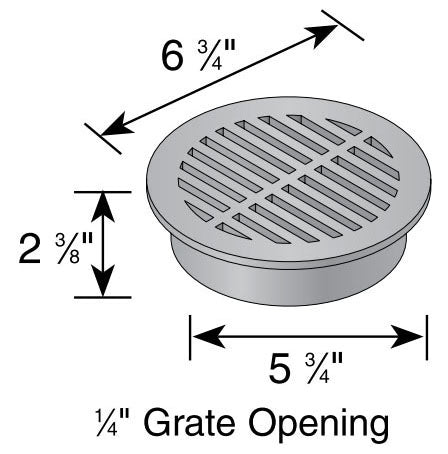 The NDS 50 is a round drain grate designed for six inch sewer and drain pipes and fittings, specifically engineered to manage surface water effectively. This grate features a robust HDPE construction that is lightweight and easy to install. The size of the grate is six and three-quarters inches in length and width, with a height of two and three-eighths inches. It is suitable for use in various outdoor areas including driveways and patios.