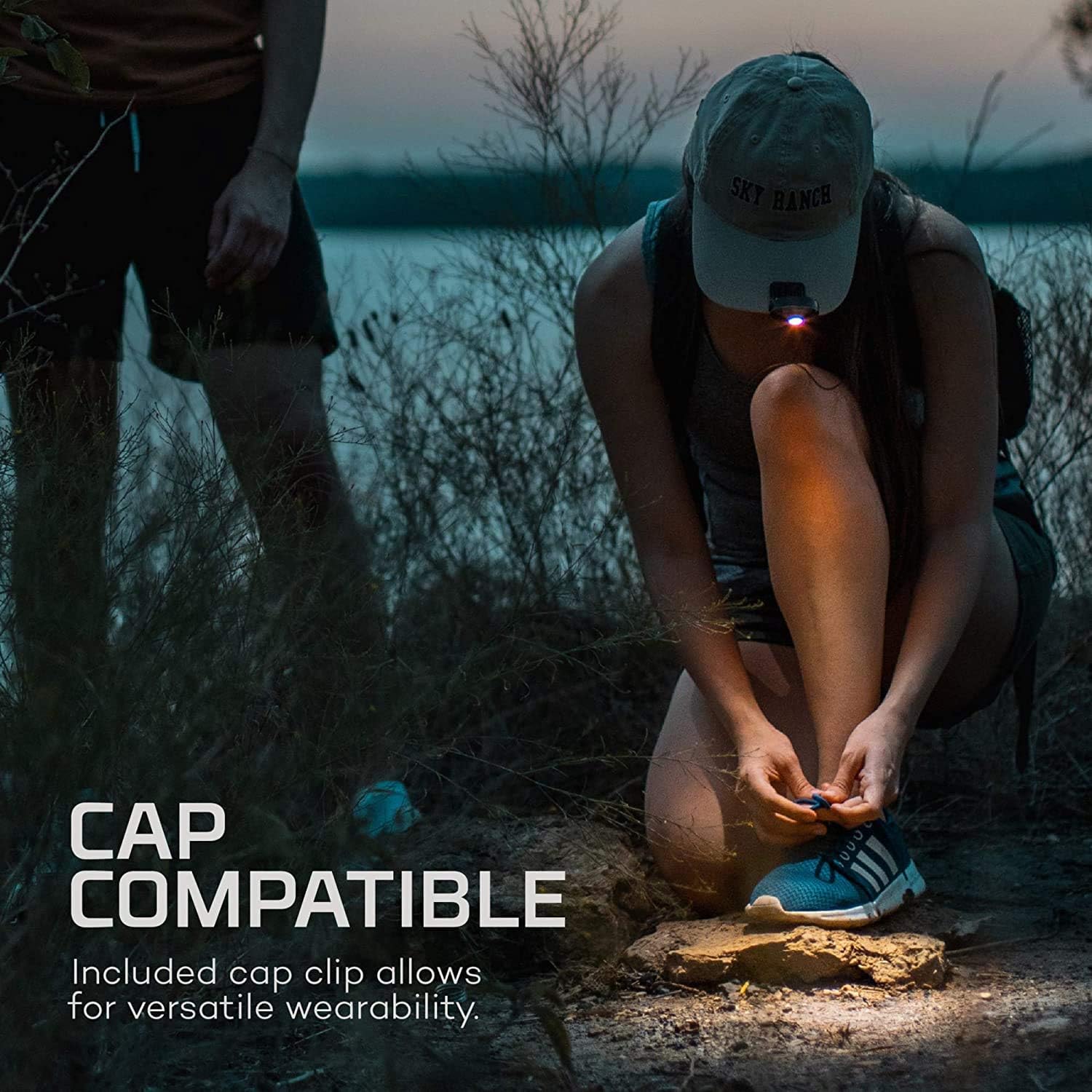 The Nebo NEB-HLP-0011 MYCRO LED headlamp provides powerful lighting with a 400-lumen Turbo mode. It offers USB recharging and comes with an adjustable head strap and cap clip for versatile use, making it perfect for various outdoor activities, such as camping, hiking, and fishing. The headlamp is water-resistant to IPX4 standards, ensuring durability in wet conditions. It runs up to 5 hours on low mode and 1 hour on high mode, with a battery indicator to monitor charge levels.