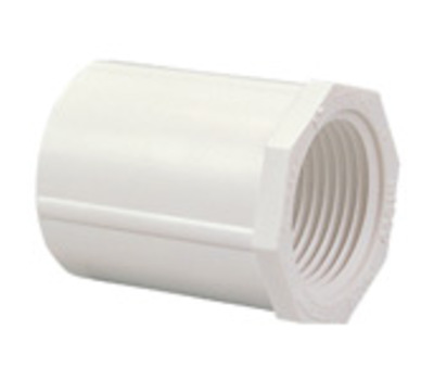 The NIBCO 435-020 is a 2 in. Slip x Female PVC Adapter designed for various plumbing and fluid management applications. It features a female socket connection on one end and a FNPT threaded connection on the other. This fitting adapts a solvent weld connection to a threaded connection effectively.