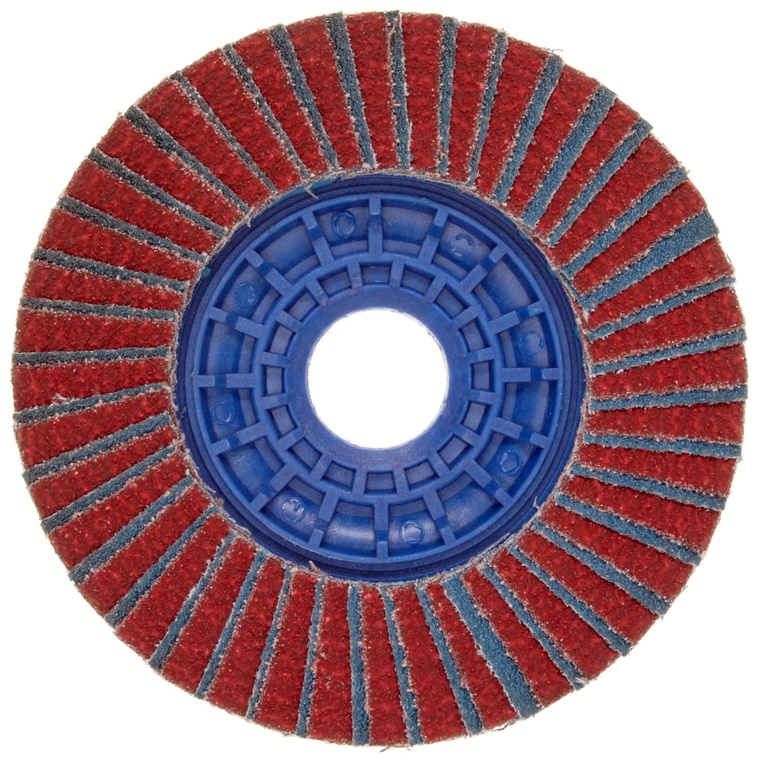 This Norton flap disc features ceramic and zirconia alumina blend, offering self-sharpening capabilities. The Type 27 design allows for optimal performance at reduced angles.