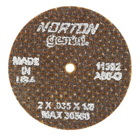 The Norton Gemini A Type 01/41 cut-off wheel with MPN 66243411402 delivers reliable performance in cutting applications. This wheel features a diameter of two inches and thickness of one-eighth inch, making it suitable for various cutting tasks.