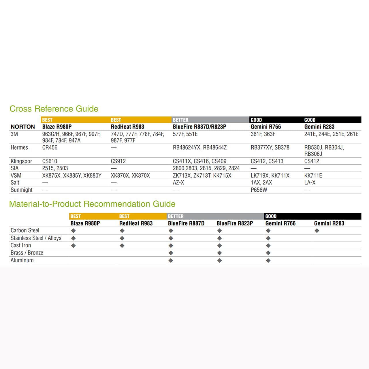 These Norton Gemini R283 belts provide reliable performance for coarse grit tasks. The P-graded premium aluminum oxide abrasive ensures consistent, cool cutting. The X-weight rayon waterproof backing offers strong, semi-flexible support, while the durable resin coating extends product life and grain retention.