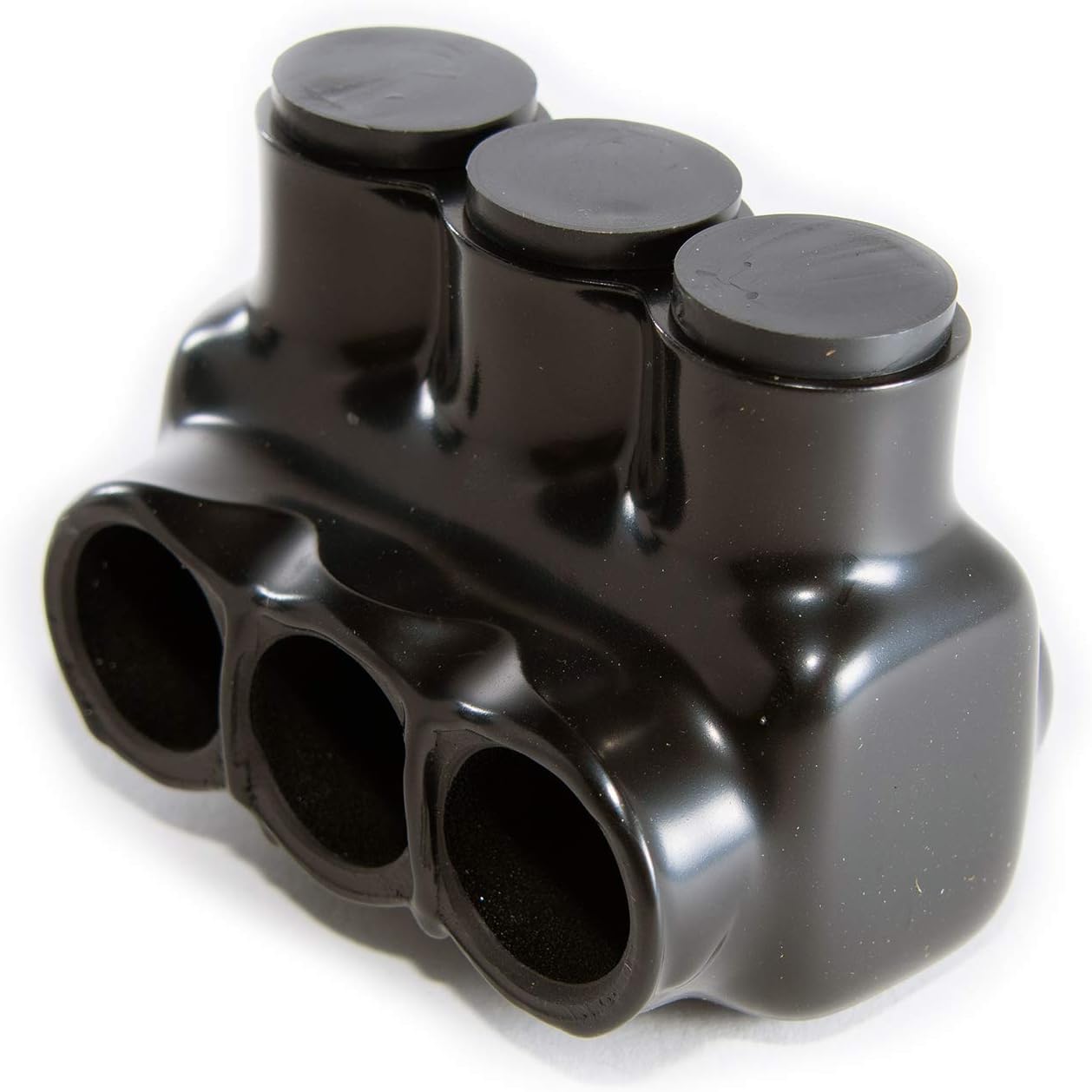 The NSI IPLD250-3 is a reliable insulated multi-tap connector block. This product is designed for both aluminum and copper cables, accommodating sizes from six AWG to two hundred fifty kcmil. Featuring two access ports, the connector allows for wire entry from either side which enhances installation flexibility.