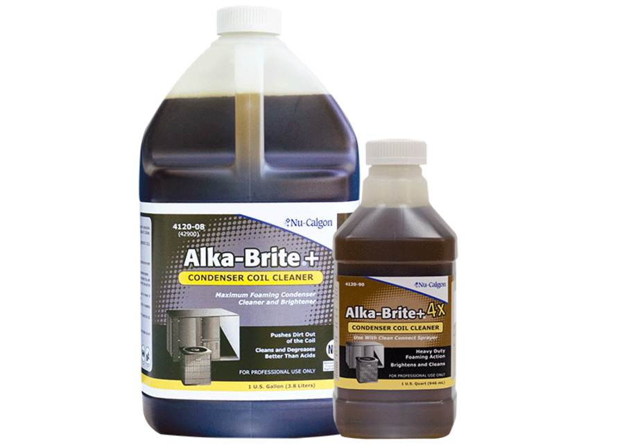 The Nu Calgon 4120-90 Alka-Brite Plus is a one quart alkaline-based coil cleaner designed to effectively clean air-cooled condensers.