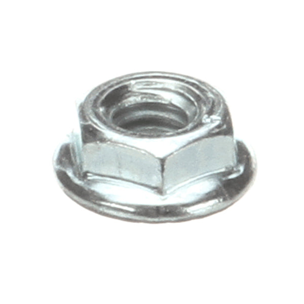 This item for Turbochef TBC100906 is a nut with a size of one quarter inch by twenty threads per inch. This nut is serrated and features a hex flange design, making it suitable for various applications.