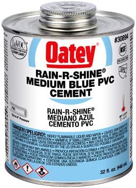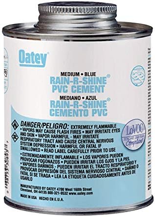 The Oatey 30894 Rain-R-Shine PVC Cement is designed for use on PVC pipes and fittings up to six inches in diameter. This medium-bodied blue cement offers a fast-setting formula ideal for wet conditions and quick pressurization.