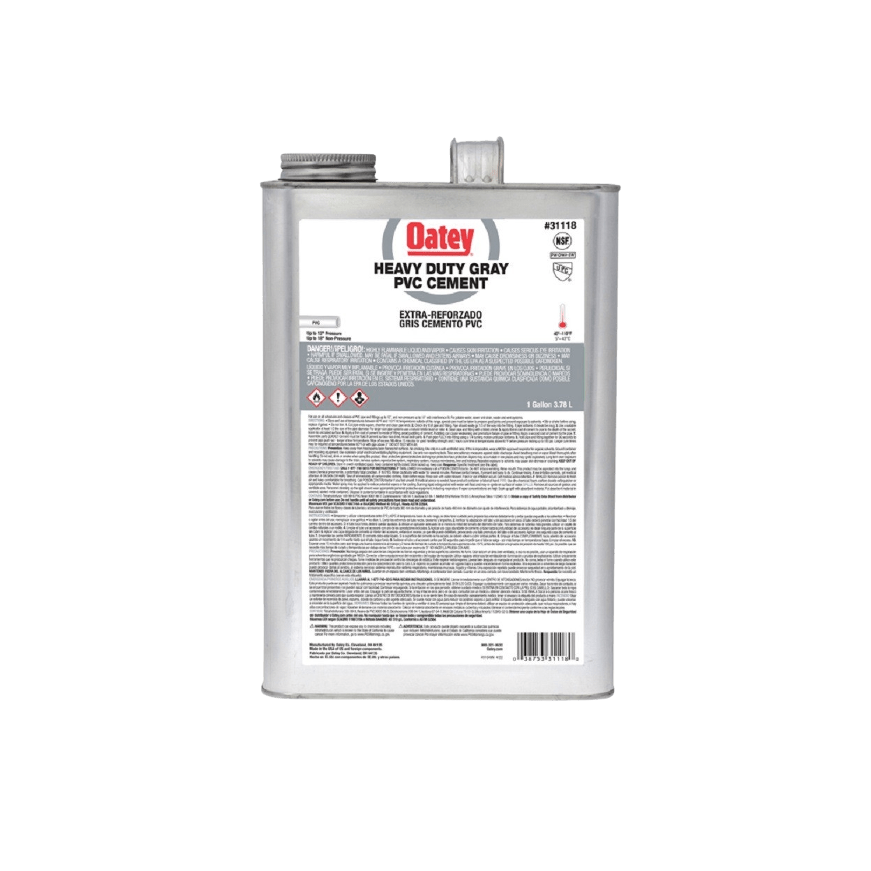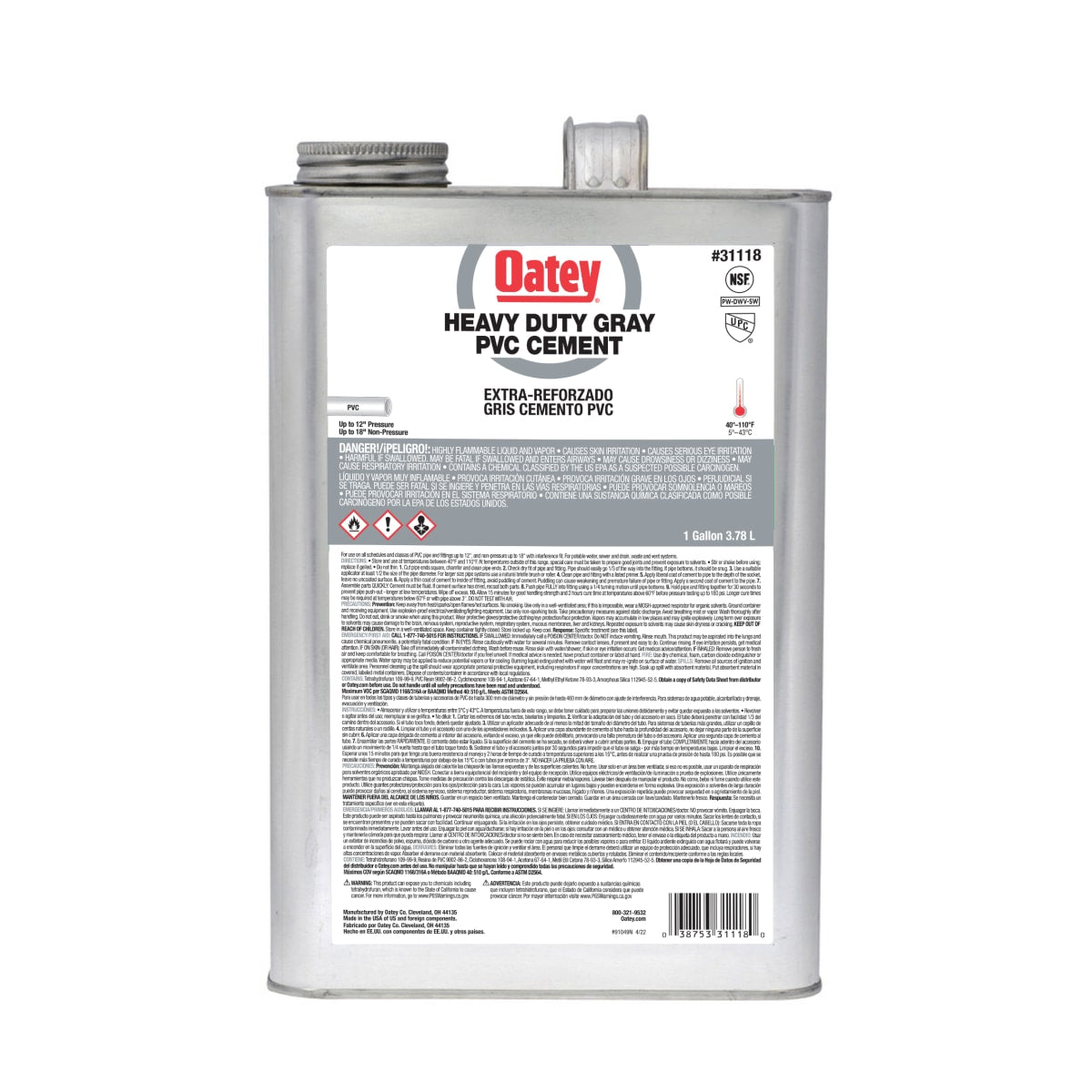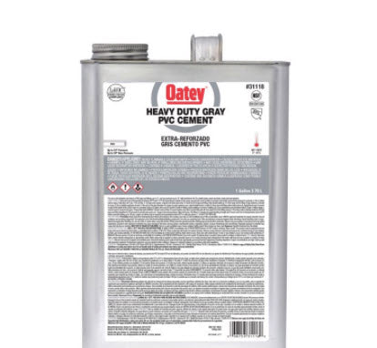 Oatey 31118 is a medium set PVC grey pipe cement. It is suitable for all schedules and classes of PVC pipe and fittings. This product is designed for a variety of applications including potable water and electrical applications. The cement forms strong bonds quickly and is effective at filling gaps in large diameter pipe joints.