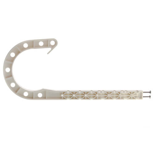 The Oatey 33742 DWV J-Hook supports drain, waste, and vent plastic pipe. Made from ABS, this hook is designed for use from joists and rafters.