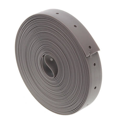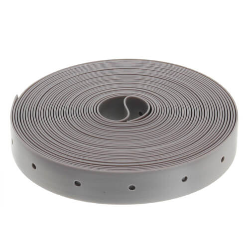 The Oatey 33925 is a durable 25 ft. plastic hanger strap designed for hanging pipes securely from joists or rafters. This strap is made from non-corrosive and non-conductive polyethylene, making it suitable for various environments. The nail holes are one-eighth inch in diameter and spaced three-fourths of an inch apart, providing flexibility and ease of installation.