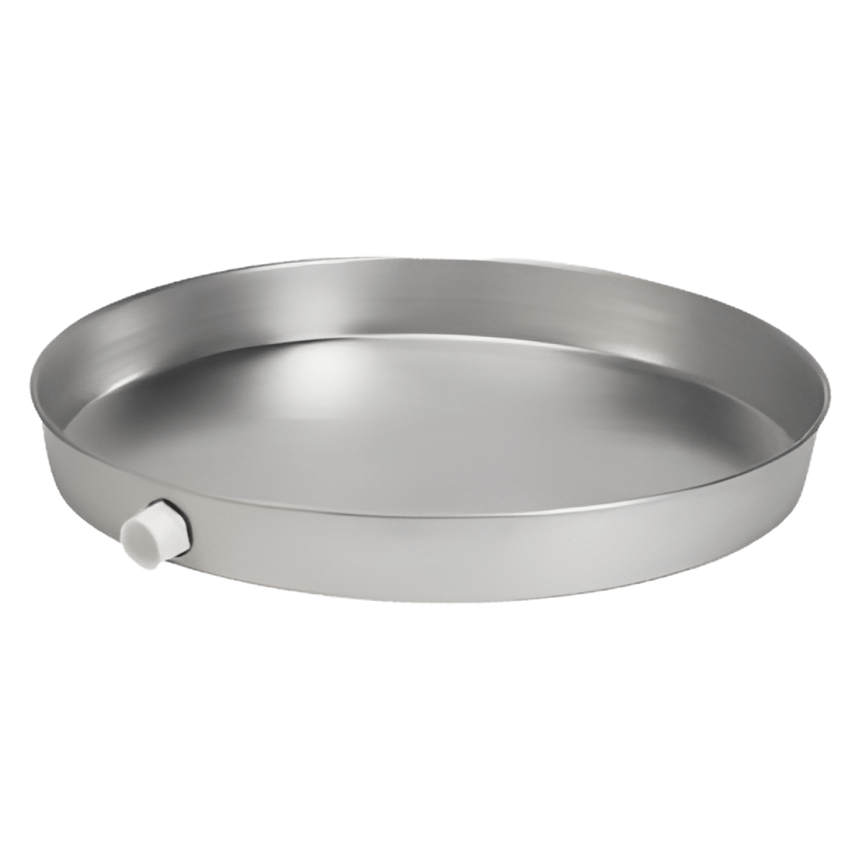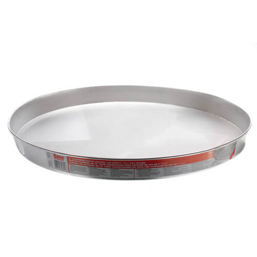 The Oatey 34079 is an eighteen-inch aluminum water heater pan designed to fit under gas or electric water heaters. This pan offers a pre-cut side opening to accommodate a drain fitting. It is constructed from durable twenty-two gauge aluminum, ensuring a strong and long-lasting product.