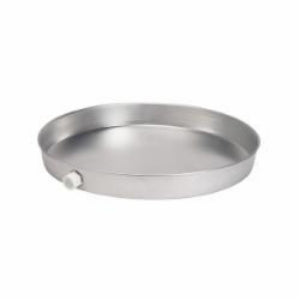 The Oatey 34153 is a round aluminum water heater pan designed for use with gas or electric water heaters. It features a pre-cut drain port that allows for easy installation and connection to a drainage system. This pan is made from durable aluminum and measures twenty-four inches in diameter with a depth of two and a half inches.
