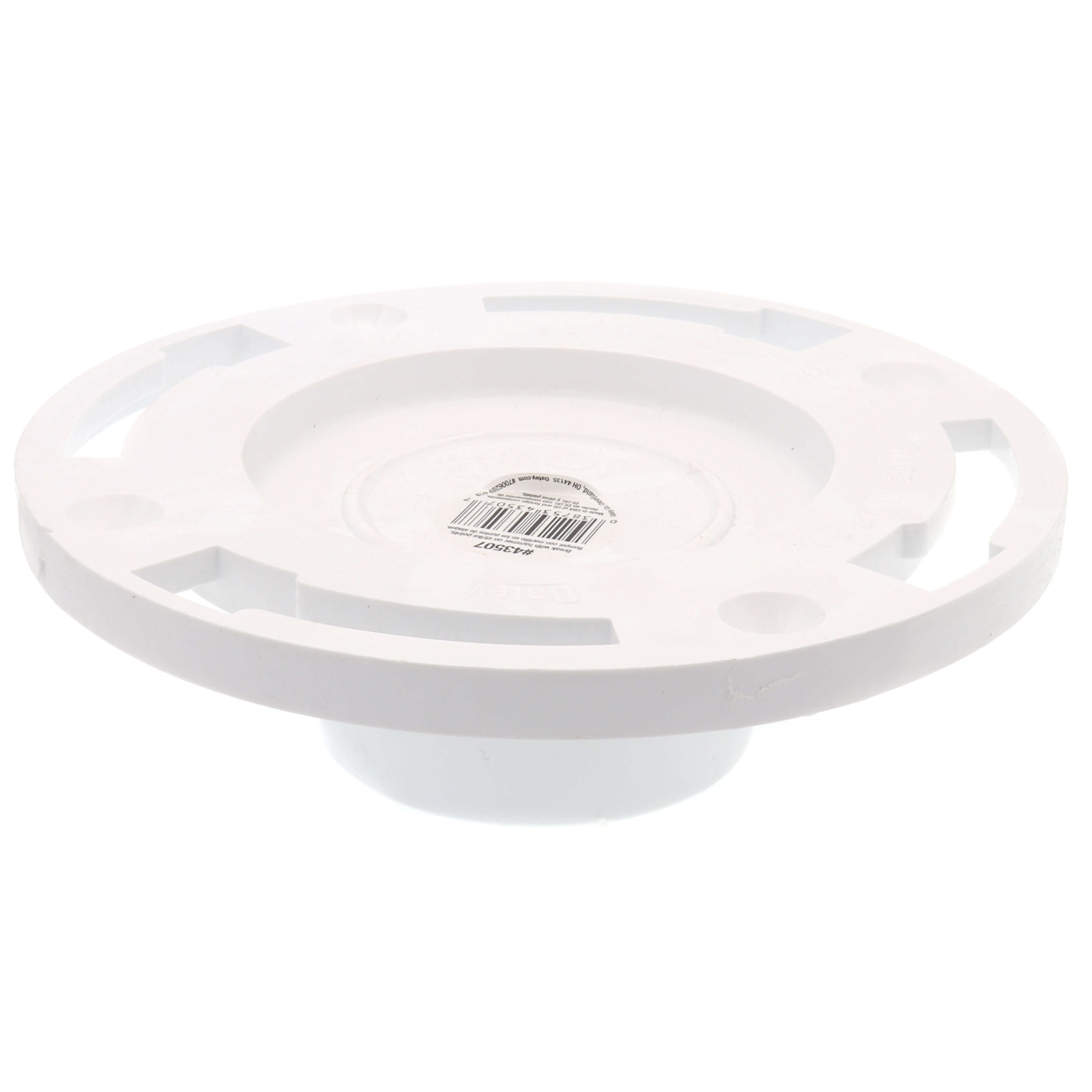 The Oatey 43507 is a three-inch inside closet flange designed for easy installation in plumbing systems. It connects a water closet outlet to a plumbing system and sits flush with the floor for a secure fit. This testable flange features a pre-molded test cap that minimizes fall through and prevents blockage of the drain pipe.