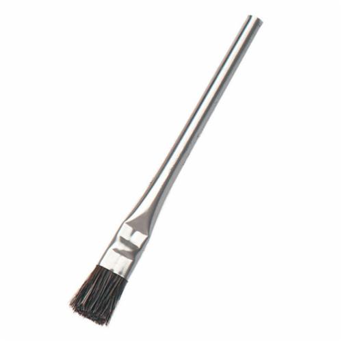 Osborn Acid Brush, MPN 0007406100, features an overall length of six and one eighth inches with a brush width of seven sixteenths inches. This brush is designed for applying liquid and paste flux. The horse hair bristles ensure efficient application, while the titanium nitride (TiN) handle and ferrule enhance durability. This brush is suited for use in various applications, including acid, lubricant, and glue.