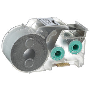 The P1 S100X150VAC is a thermal transfer self-laminating label designed for wire and cable applications. It features a white print-on area with a clear overlaminate that protects the label. This ensures easy identification in a variety of conditions. The cassette includes an integrated memory device for automatic formatting and recall of the last label used, making it efficient for repetitive tasks. This product is compatible with LS8E and LS8EQ printers.