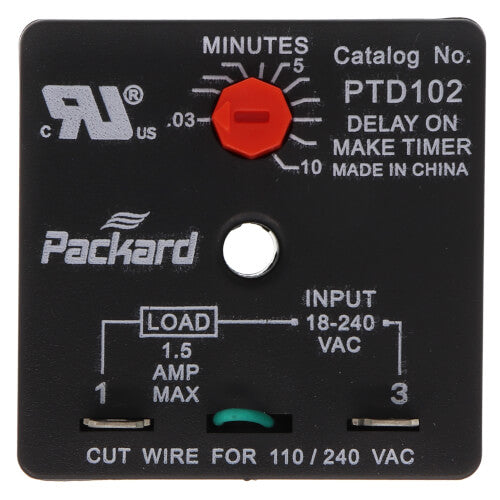 The Packard PTD102 Adjustable Delay on Make Timer is a versatile tool designed for precise control over equipment operation times. Ideal for various electrical applications, this timer is engineered to provide a time delay range from .03 to 10 minutes.