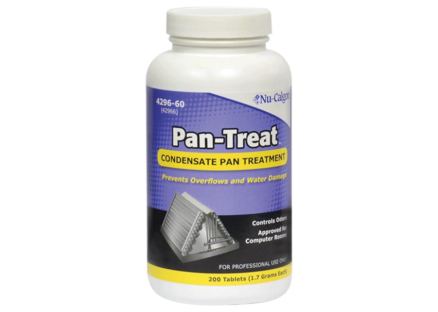 Nu-Calgon Pan-Treat 1.5 lb. condensate treatment tablet is designed to control odors and prevent overflows in condensate drain lines. This product is effective for use in humidifiers as well. The tablets are safe, non-corrosive, and completely biodegradable.