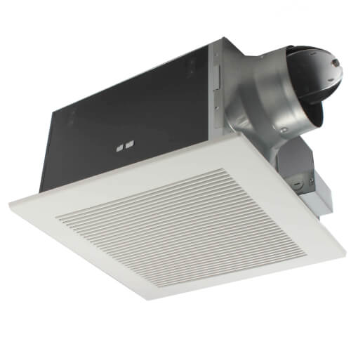 This Panasonic exhaust fan includes a built-in damper to prevent backdraft, ensuring no cold air enters the space. Its design supports trouble-free operation for long durations, ideal for bathrooms and other areas needing consistent ventilation.