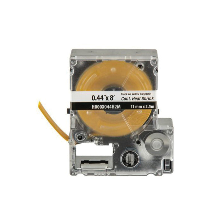 The PANDUIT H000X044H2M is a continuous heat shrink label that is designed for use with portable printers. This product is made from military-grade polyolefin, ensuring durability for various applications. The label measures zero point twenty-five inches in diameter, eight feet in length, and zero point forty-four inches in width. It is suitable for use on wires ranging from sixteen to ten AWG. The fast-loading MP label cassette allows for easy label material and ribbon changes.