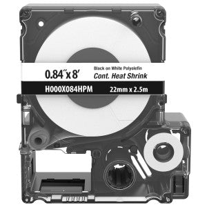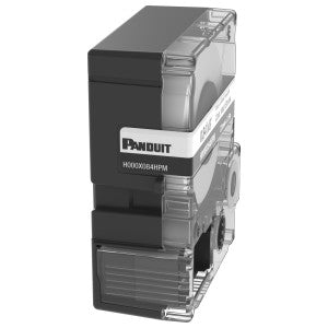 The Panduit H000X084HPM is a heat shrink label cassette made from military-grade polyolefin. This product is suitable for labeling wires and cables ranging from eight to two AWG. It measures zero point eight four inches in diameter and eight feet in length, offering durability for long-term use.